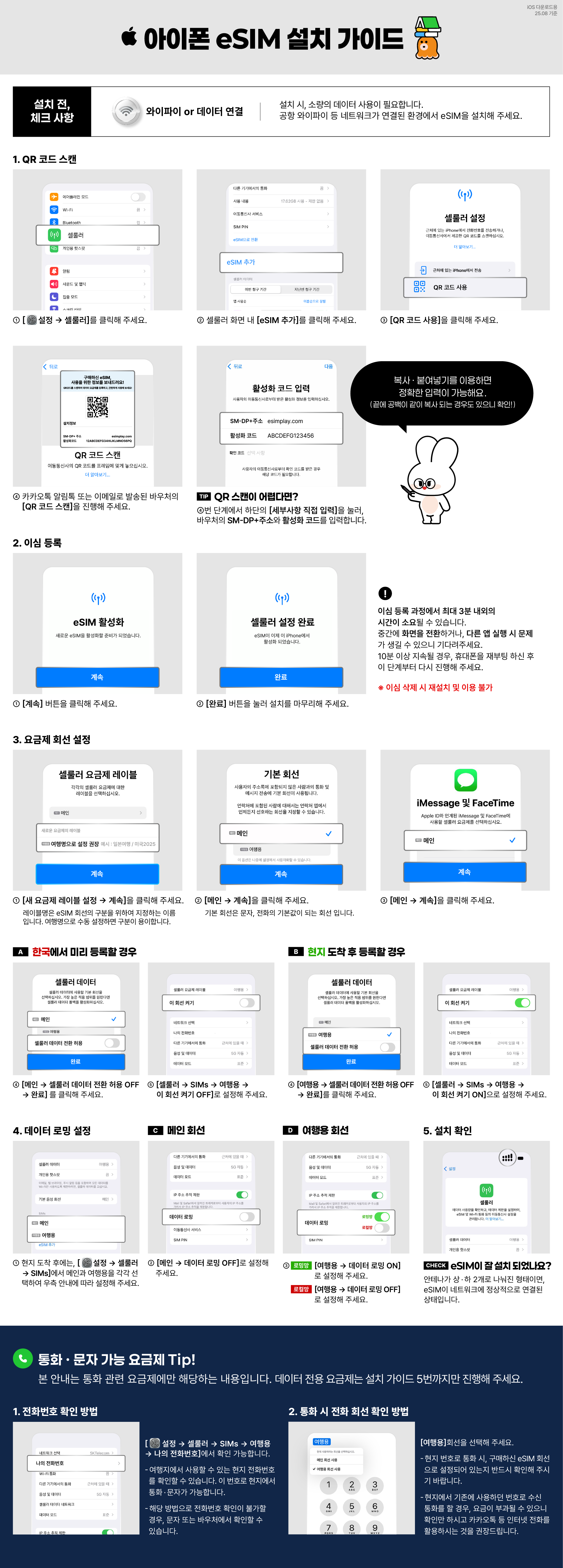 설치 시, 소량의 데이터 사용이 필요합니다. 공항 와이파이 등 네트워크가 연결된 환경에서 eSIM을 설치해 주세요.